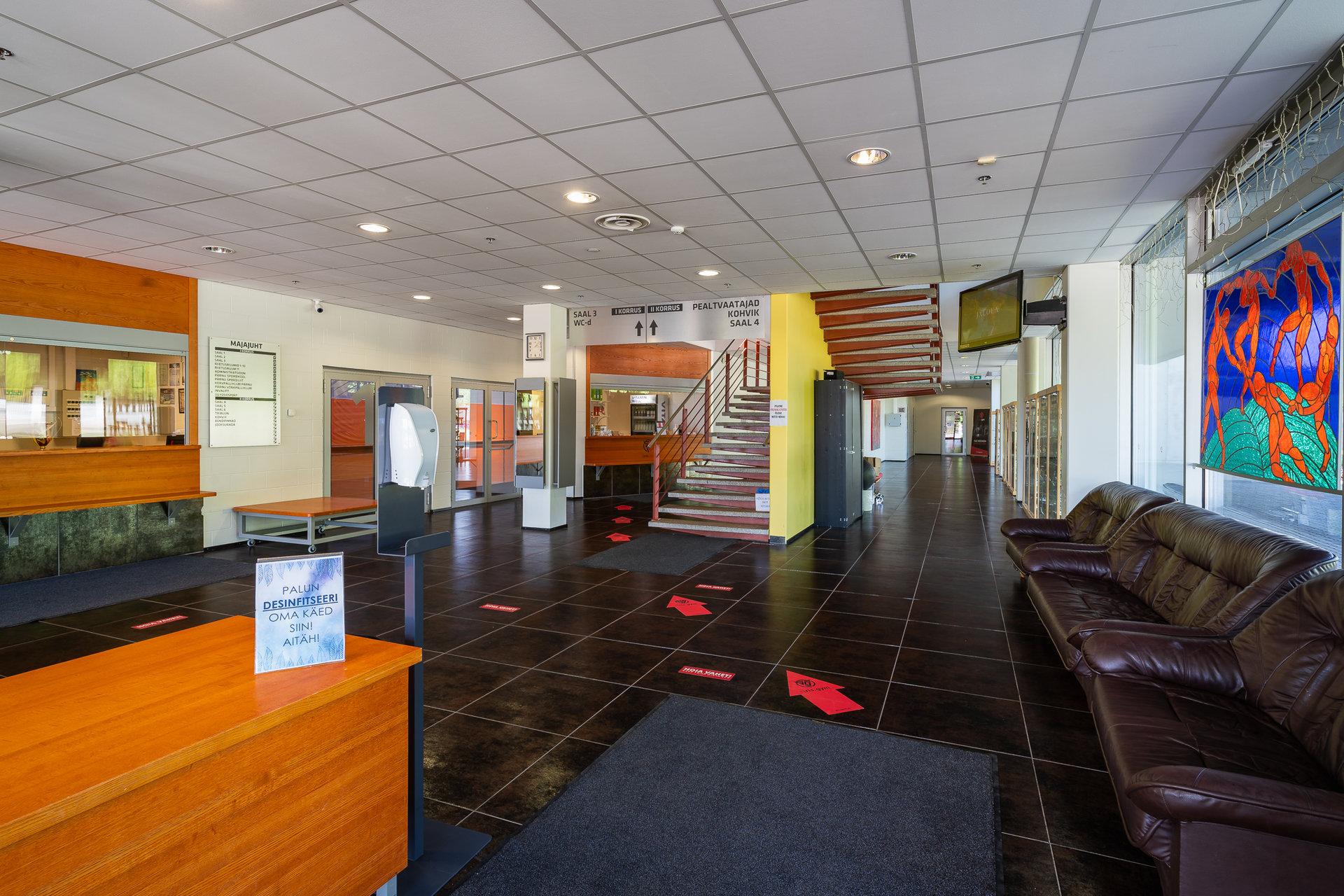 The 2040 m2 main arena of the sports hall can be used for competitions designed for large audiences. If needed, the arena can be divided into three training or competition areas using curtains. The complex has a gym, aerobics hall and martial arts hall as well as a 210 m running track. The venue is used by a number of sports clubs. A range of events, seminars and fairs can be organised here. Additional services are also offered, including office and seminar room hire, a massage service and cleaning and storage of sports equipment.