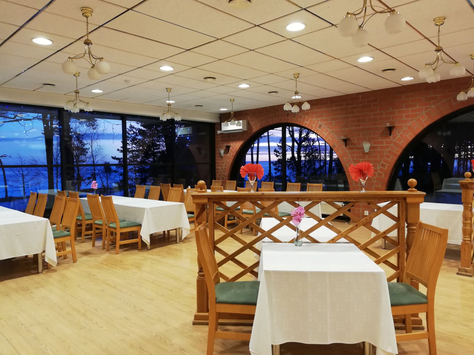 Meals are served in the beautiful sea-view restaurant as a buffet as well as in the formal style. The restaurant can accommodate up to 200 people. The beautiful outdoor terrace seats up to 30 people, and the cozy bar holds up to 20 people.