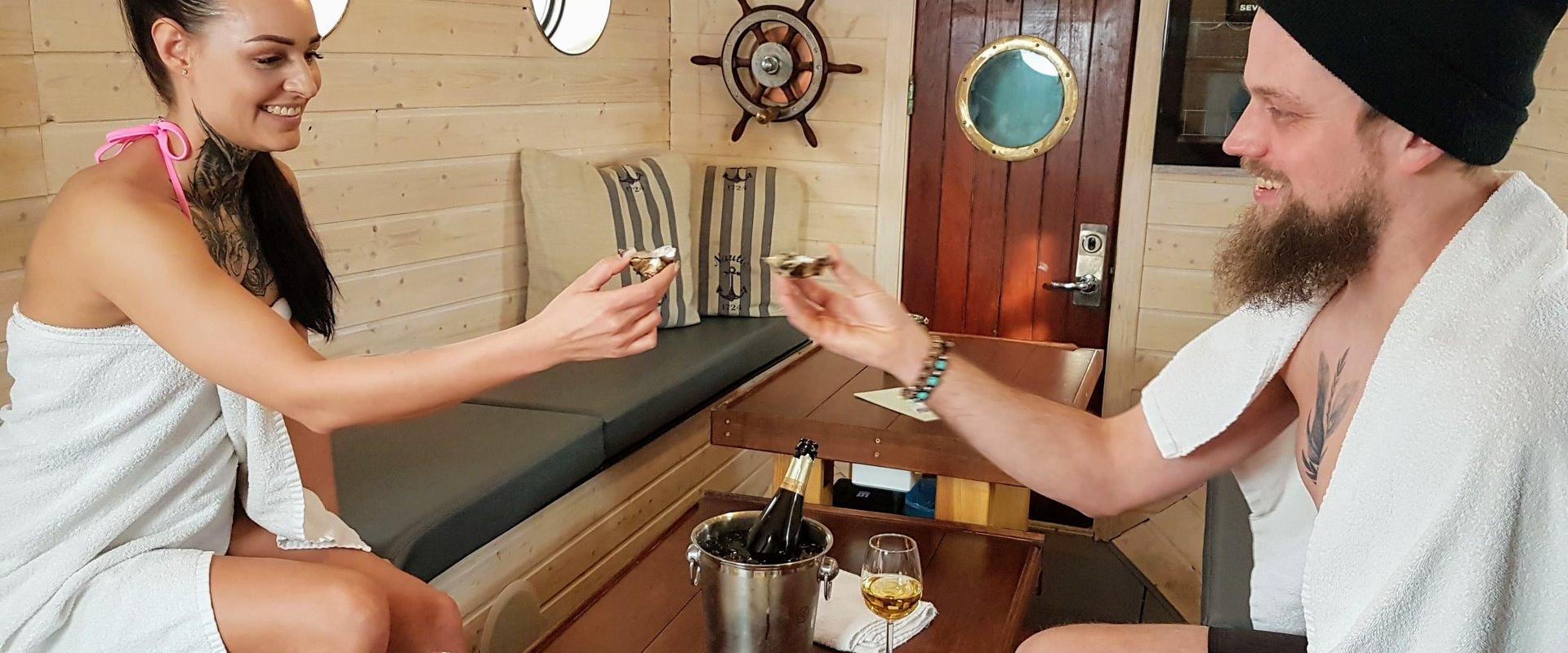 Suurin osa saunan yksityiskohdista on vanhoista laivoista. Eteisessä on tilaa 14 hengelle ja lauteille mahtuu enintään 4 henkeä. Sauna sijaitsee lammen rannalla, jossa voi talvellakin virkistäytyä avannossa.