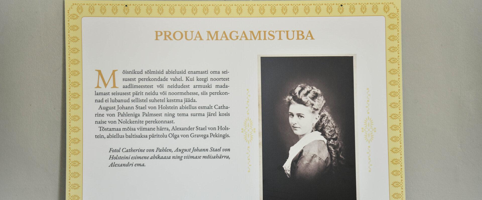 Ekskursijas laikā jūs gūsiet pārskatu par muižu, muižniekiem un vietējo iedzīvotāju dzīvi laika gaitā. Apskatīsim pagrabā esošo kino muzeju, padomju laika skolas dzīvi un gadsimta sākuma Igaunijas zemnieku dzīvi atainojošas izstādes. Kopš 1921. gada ēkā darbojas muižas skola, savukārt interesanti ir redzēt, ka skolas dzīve ir saskaņota ar vēsturisko muižas ēku.