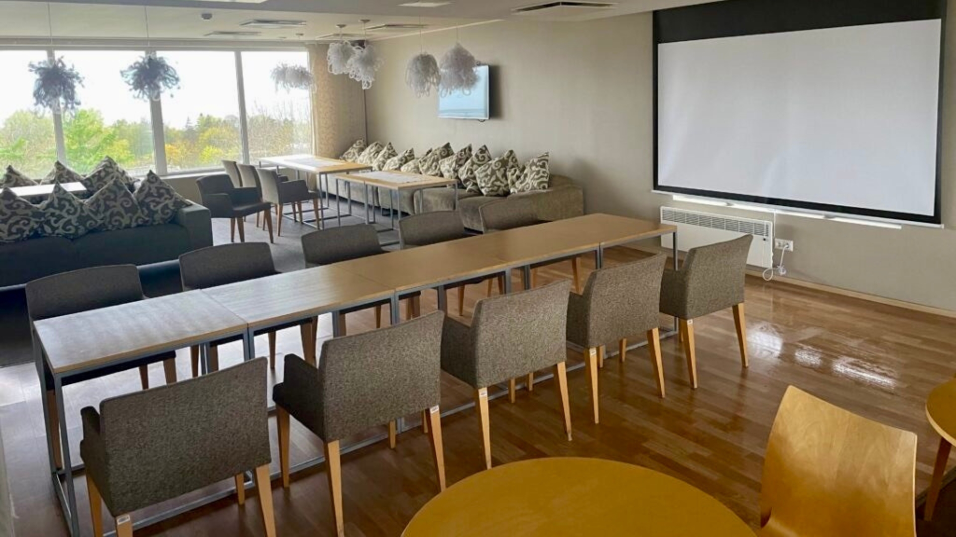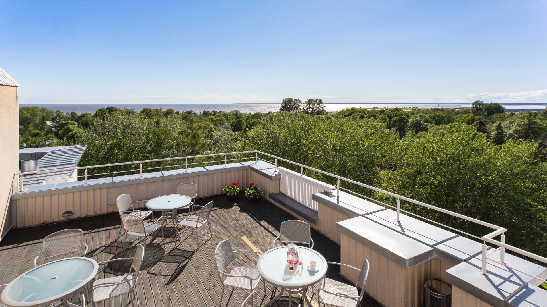 ESTONIA Medical Spa & Hotel omulīgā panorāmas kafejnīca atrodas viesnīcas 8. stāvā. No turienes paveras valdzinoši skaists skats uz jūru, Pērnavas upi, pilsētu un parkiem.Esat laipni gaidīti pie mums organizēt dzimšanas dienas, sapulces, seminārus, apmācības un dažādus pasākumus līdz 45 apmeklētājiem. Vasaras mēnešos turklāt ir arī atvērta jumta terase.