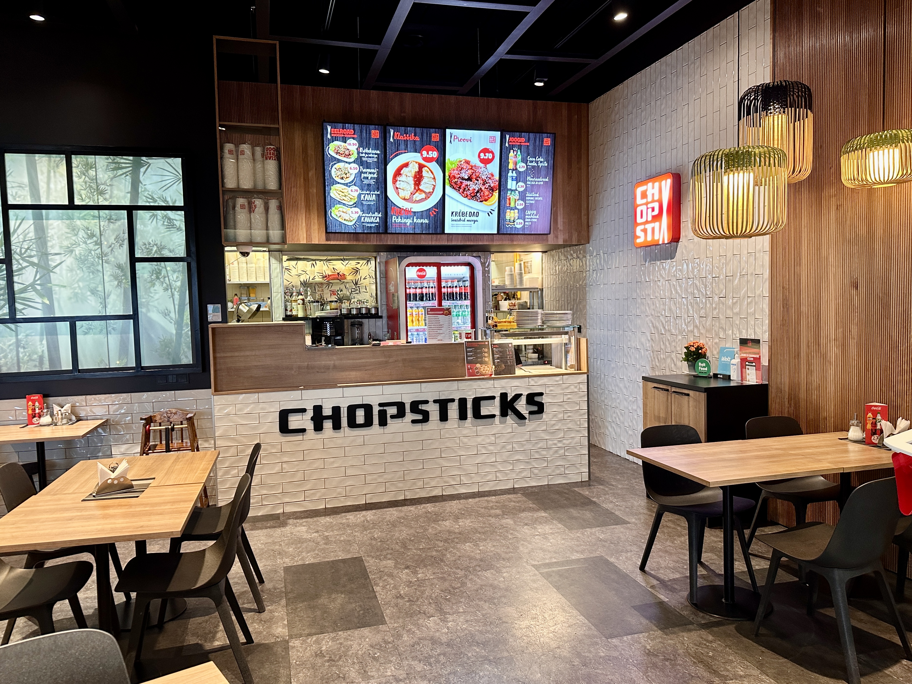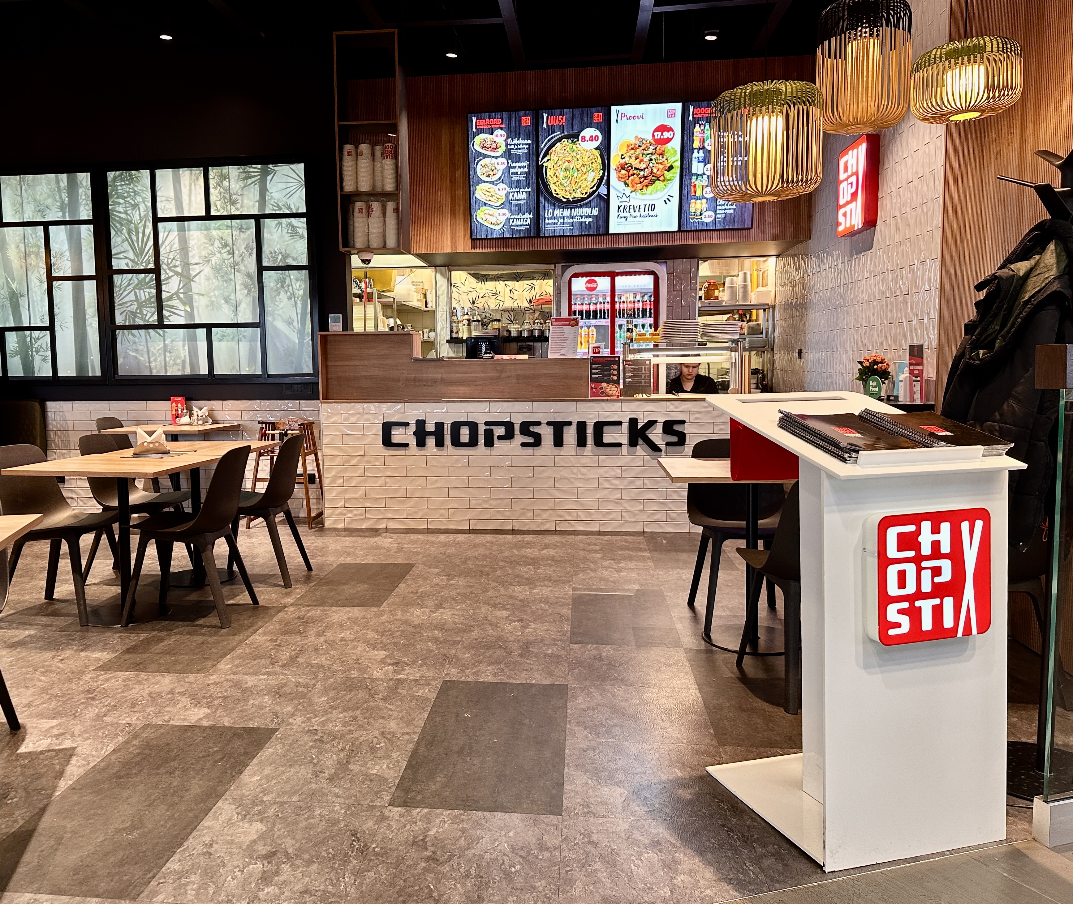 Chopsticks Kaubamajakas on Hiina ja Aasia köögile spetsialiseerunud rikkaliku menüüga kiirtoidurestoran.