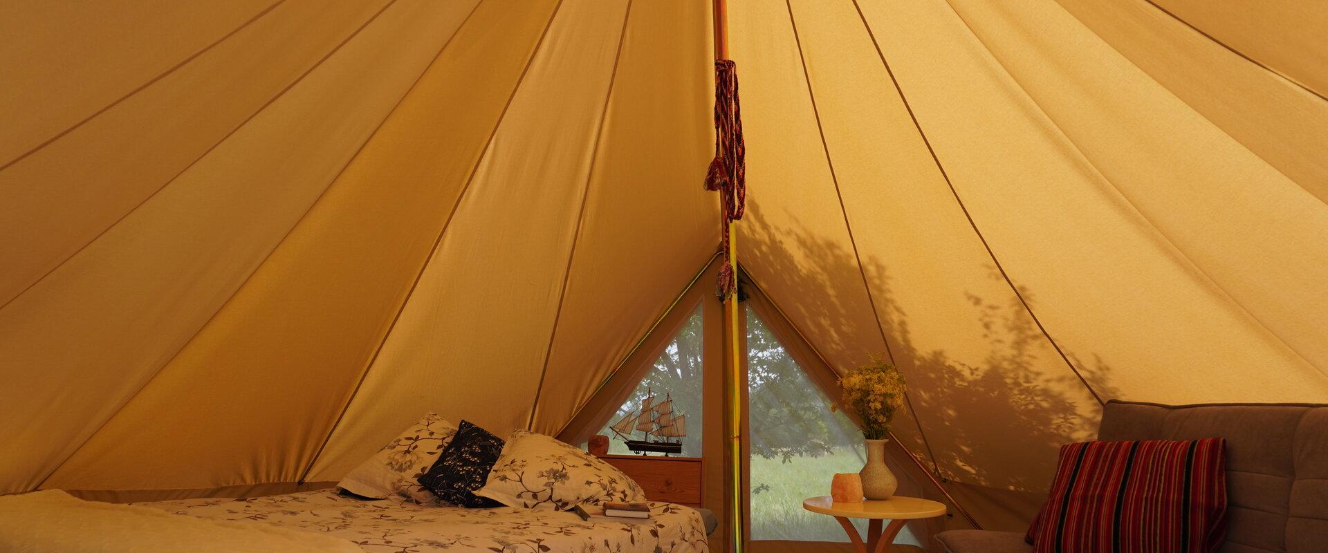 - Glämping-telk on ööbimiseks sobiv kuni 4 inimesesle. Telgis on kaheinimese voodi ja lahtikäiv diivan.