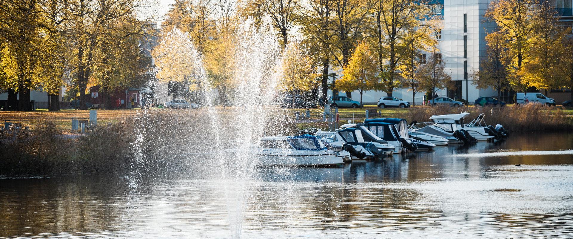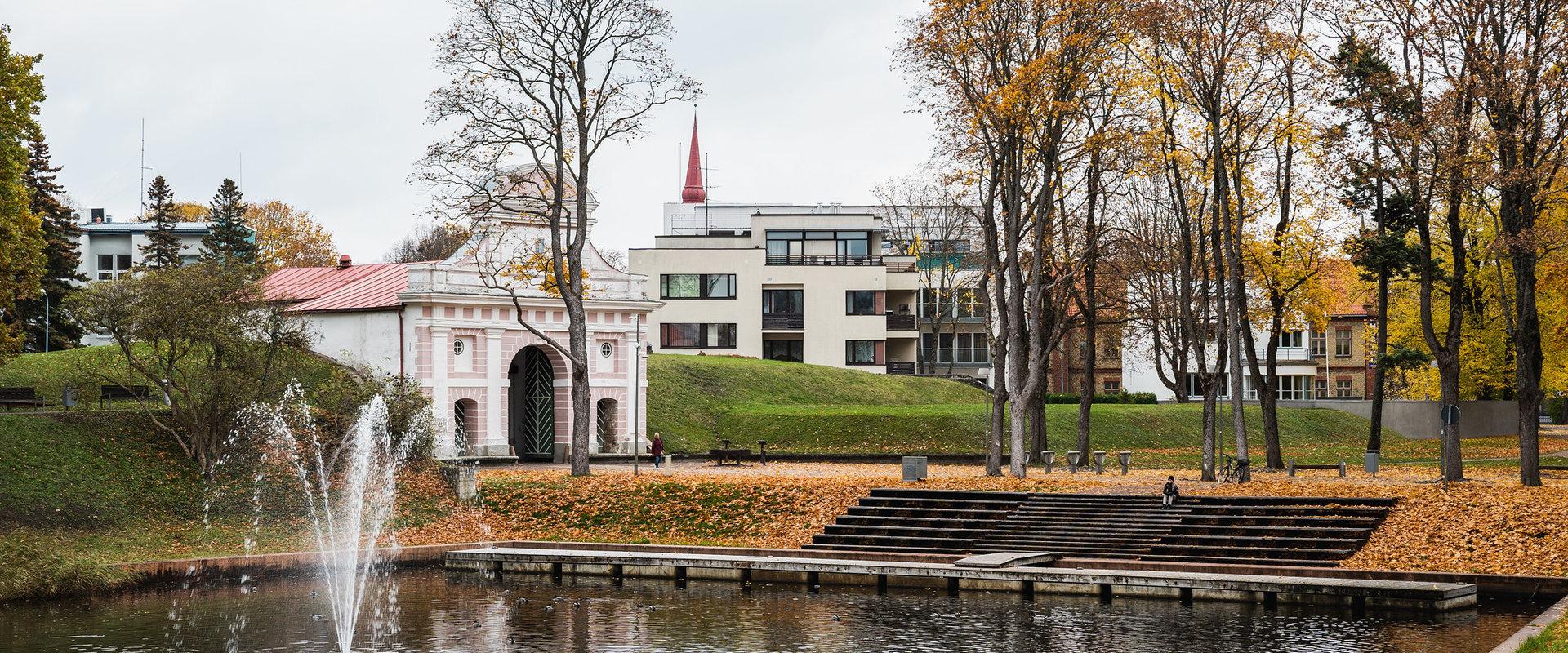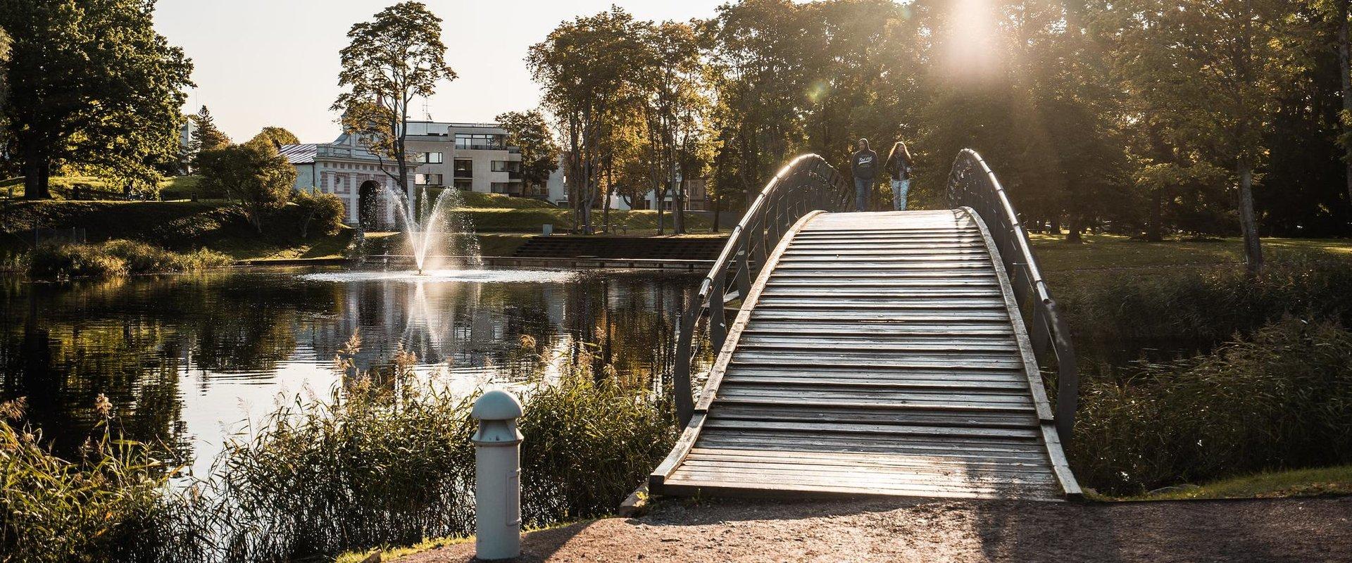Pärnu Vallikääru park võlub kaldapervel kulgeva valgustatud promenaadi, üle vallikraavi kaarduva romantilise jalakäijate silla ja vallikraavi keskele rajatud Eesti kõrgeima purskkaevuga.