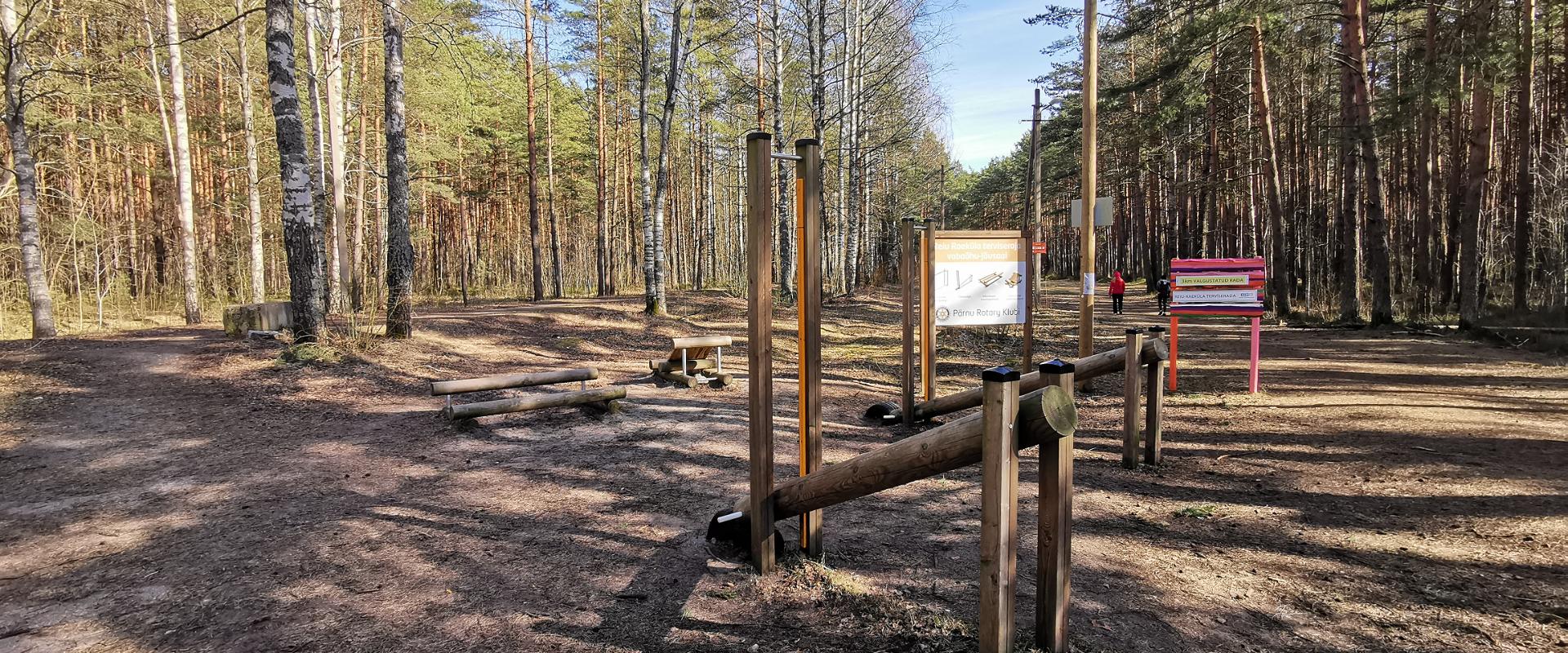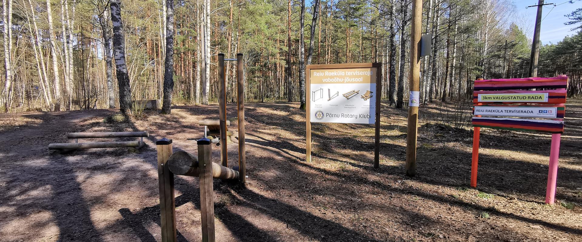 Pärnus Reiu-Raeküla terviseradade alguspunktis asub tasuta kasutatav jõulinnak. Välijõusaal sobib suurepäraselt soojenduse tegemiseks, treeningujärgseks venitamiseks, kuid miks mitte ka põhjalikuma jõutreeningu sooritamiseks.