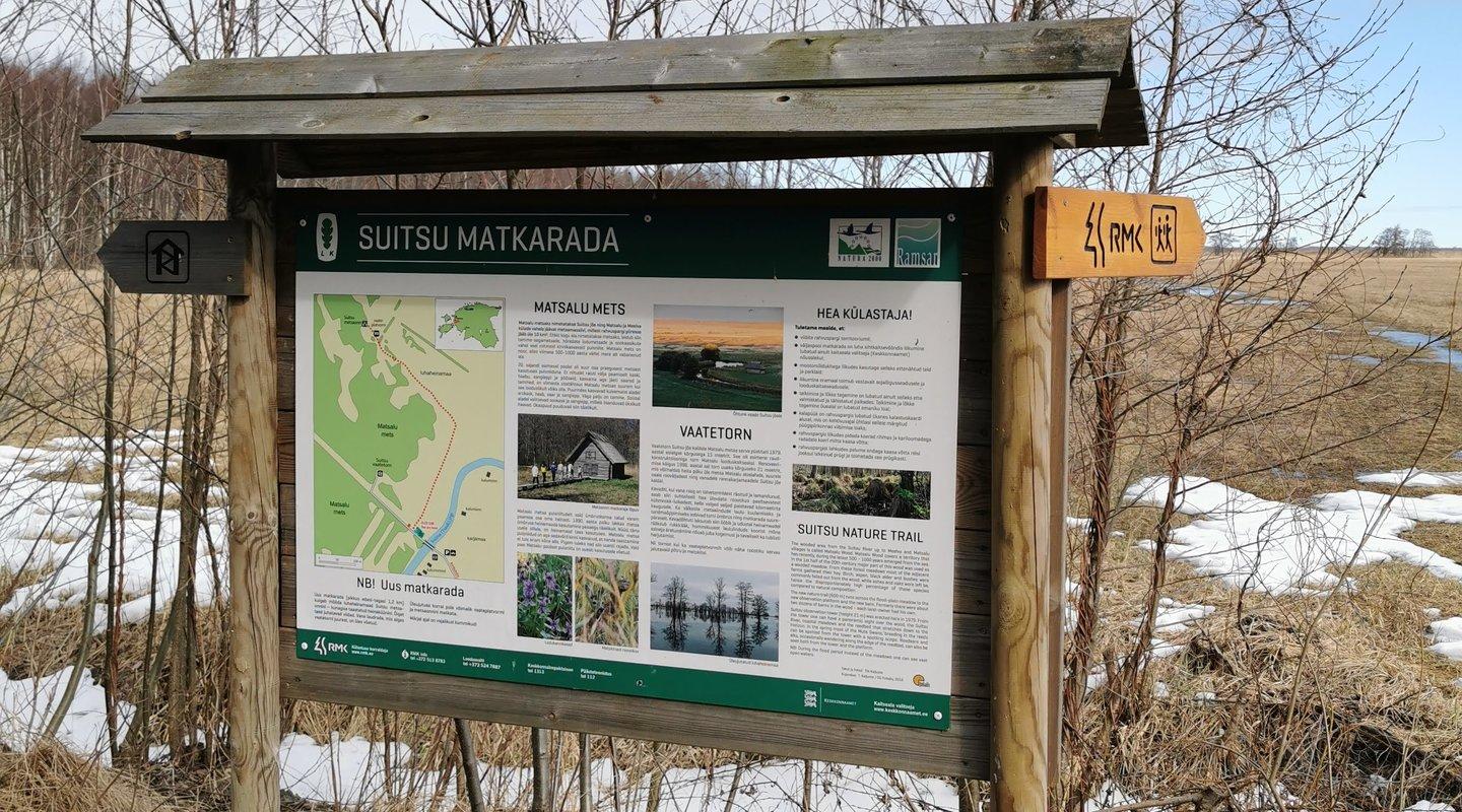 Suitsu matkarada on 1,3 km pikkune edasi-tagasi pinnasrada, mis asub Matsalu metsas ja kulgeb paralleelselt Suitsu jõe luhaniiduga. Rada läbib sanglepalodu, puisniidulaadse lagendiku ja viib välja luhaniidule. Teel näed roostikku, metsa, luhaniite ja vanu kalurionne. Metsarajal on kõige huvitavam liikuda varakevadel, varahommikul või hilisõhtul, kui on loomade ja lindude aktiivseim tegutsemisaeg. Näha võid kitsi, põtru ja metssigu, kuulda kassikakku, metskurvitsat ja hüüpi.