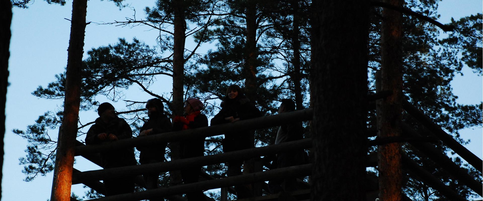 Kui on õnne, võime raba peal kohata metsloomi või nende tegevuse jälgi. Teeme tiiru raba peal ja seikleme laugaste vahel. Lõpuks võtame suuna vaatlustorni, kus einestame ning naudime vaadet kaunile rabamaastikule.