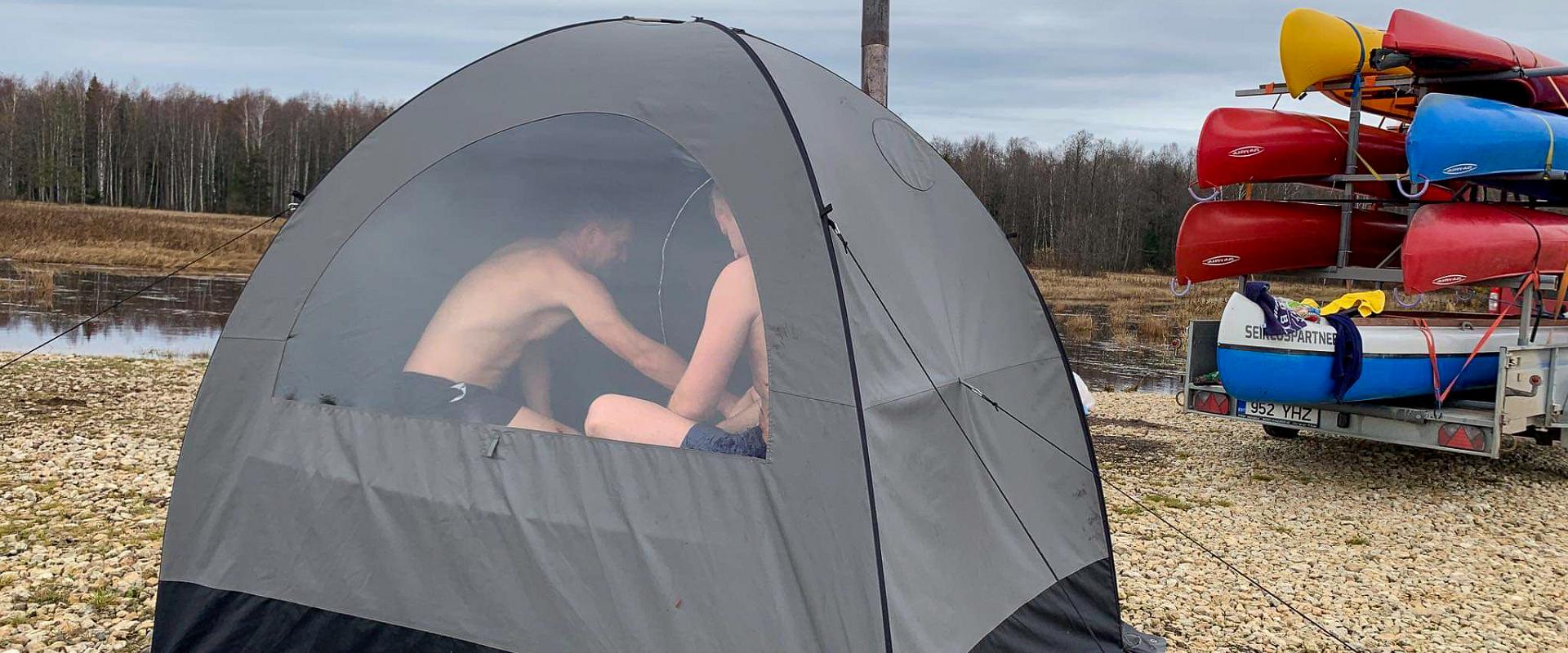 Lisatasu eest on võimalik laiul telksaunas saunatada.