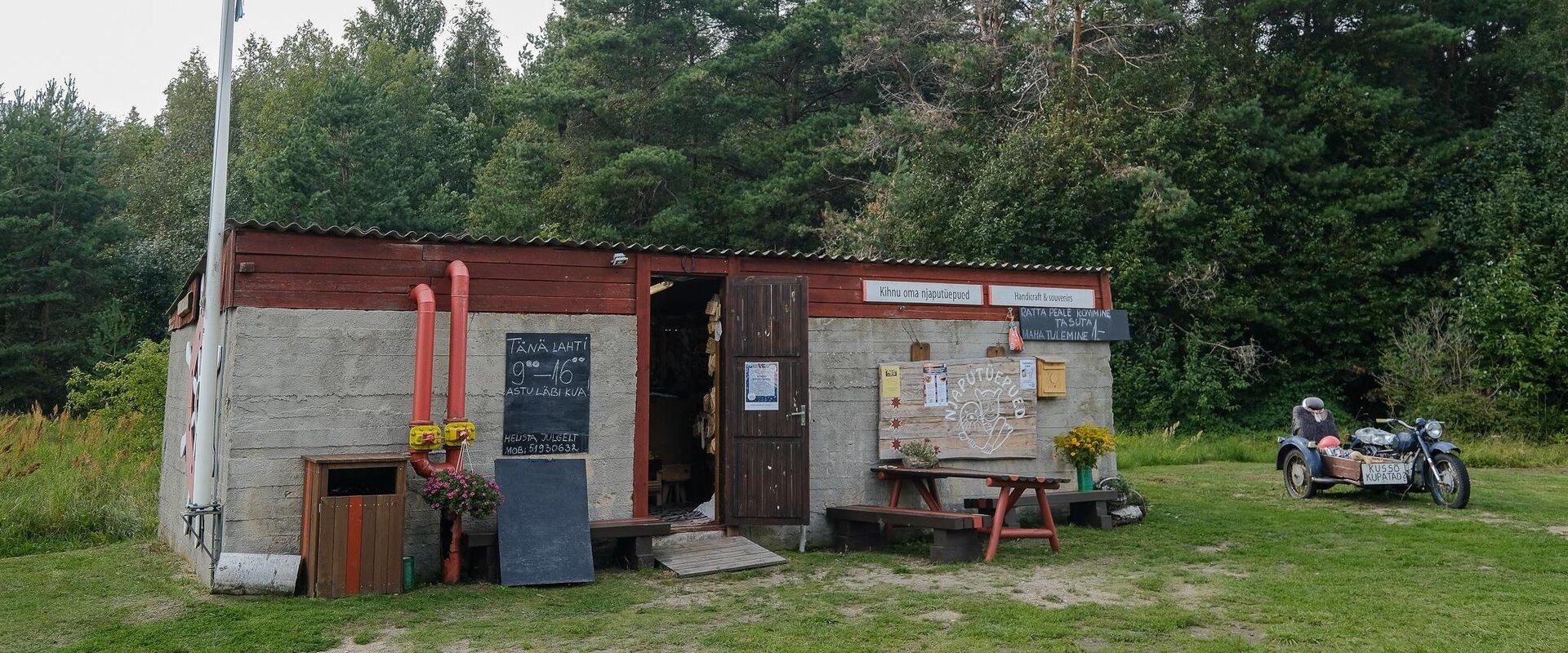 В магазине изделий ручной работы Njaputüe pued на Кихну летом можно купить в широком ассортименте кихнуское рукоделие. Продавщица сама является кихнуским мастером ручной работы и знает всех авторов изделий в лицо – поэтому в продажу поступает только качественный товар. Помимо изделий ручной работы в магазине продаются сувениры с кихнуской тематикой, а также кофе и местное домашнее мороженое. Полезно знать: здание, в котором работает магазин, также весьма особенное – это бывший градирня, то есть бассейн с охлаждающей водой для дизельной электростанции.