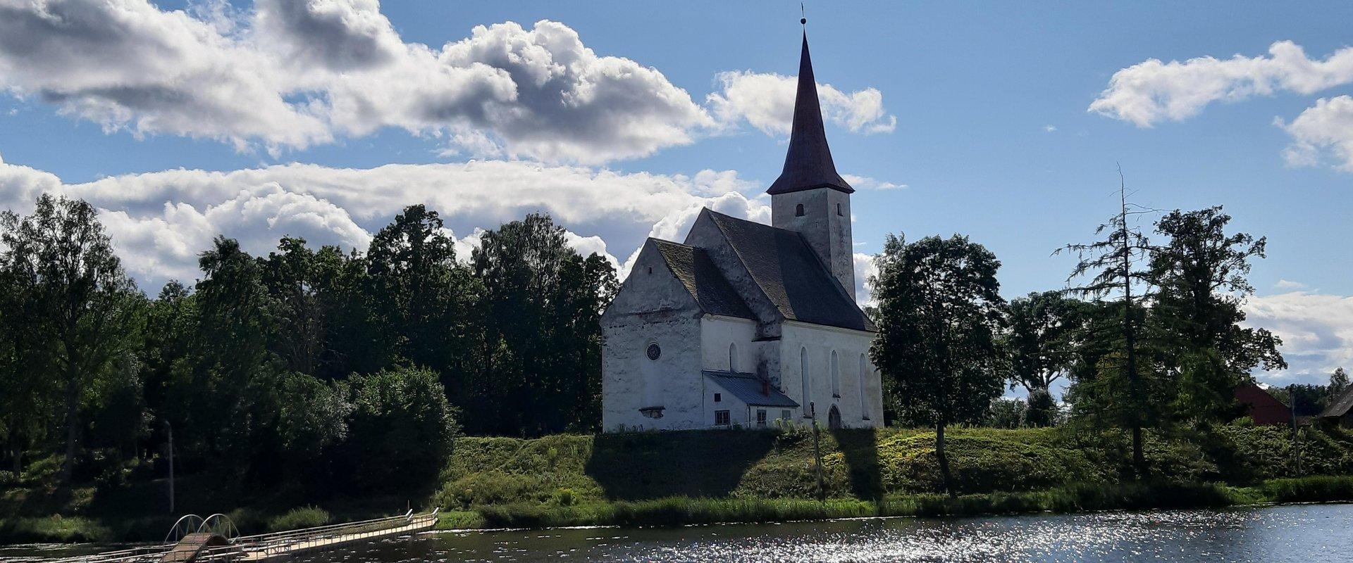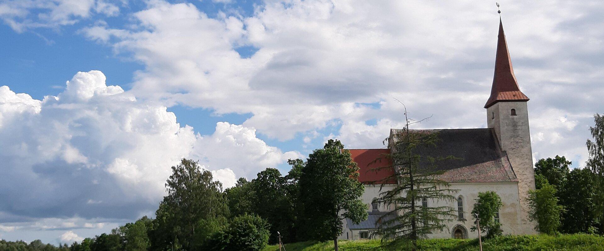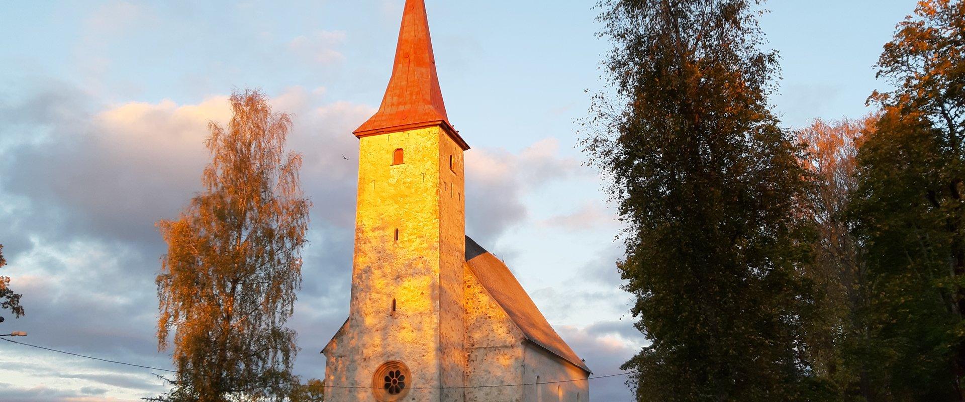 Построенная в 1300-х годах церковь является одной из старейших каменных церквей Вильяндиского уезда. После Ливонской войны церковь долго стояла в развалинах. В Северной войне церковь также пострадала от пожаров и была отстроена с деревянным потолком только в 1767 году. В конце XIX века здание обставили в псевдоготическом стиле, алтарную стену построил Й. Г. Мюленхаузен. Автор созданной в 1887 году алтарной картины неизвестен. Органный проспект был построен в 1804 году Й. А. Штейном, и он сохранился после перестройки органа братьями Крийзами в 1937 году. В церкви находится кольцевой крест Анне Ратасеп, датированный 1598 годом. Рядом с алтарем находится мраморный мемориал генералу Х.Х. фон Ферсену.